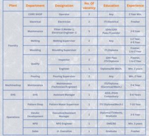 Positions :- Operator, Electrician, Production Supervisor & Others