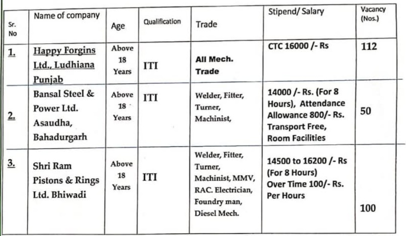 - Venue – GOVERNMENT INDUSTRIAL TRAINING INSTITUT NARWANA 126116